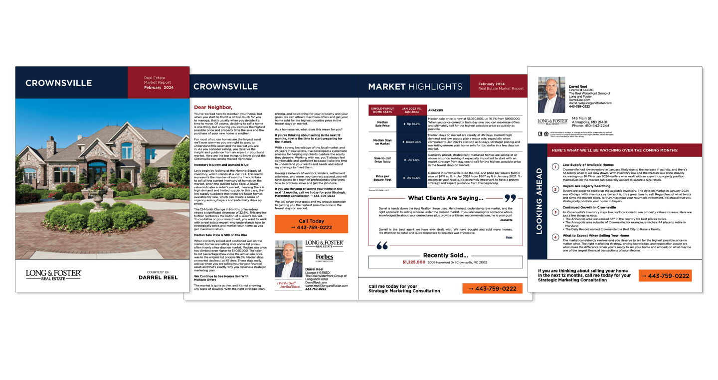 Monthly newsletter templates crafted to align with a realtor’s brand and engage their local market.