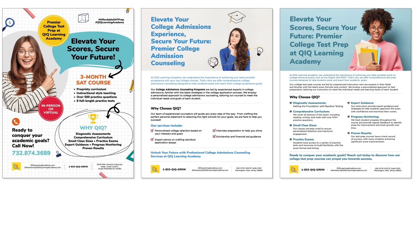 Created flyers for general awareness and marketing for social and print distribution, as well as additional targeted materials highlighting specific services.